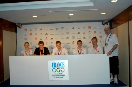 Pressekonferenz bei den Franzosen: vlnr. Wiebke Julius, Felix Odebrett, Dennis Buttler, Felix Böschen, Gordon Bell und Patrick Magaloff CNOF