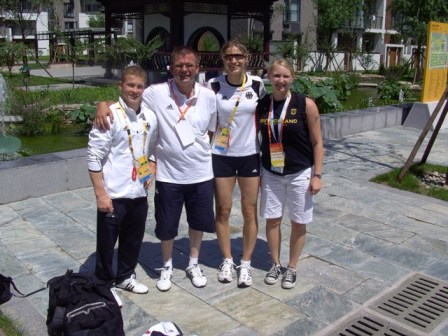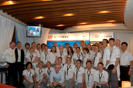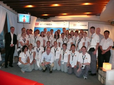 Beijing. Ein krönender Abschluss am letzten Tag der Reise der 35 FairPlay-Botschafter war die Einladung ins Deutsche Haus. Am Tag, an dem die Deutschem sowohl im Triathlon als auch im Gewichtheben eine goldene Medaille holen konnten, war das Deutsche Haus im Kempinski-Hotel voll mit den bekanntesten deutschen Athleten und die FairPlay-Botschafter waren mittendrin.