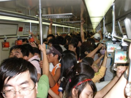 Am Nachmittag fuhr dann die gesamte Gruppe zum Österreichischen Haus, wobei schon die Hinfahrt zum Abenteuer wurde. Die U-Bahn war voller Menschen, so dass man sich, nachdem man schon eine Bahn abgewartet hatte und mehrmals von dem Sicherheitspersonal auf die Wartelinien aufmerksam gemacht wurde, reinquetschen musste und hoffte, dass man hier lebend rauskommt.